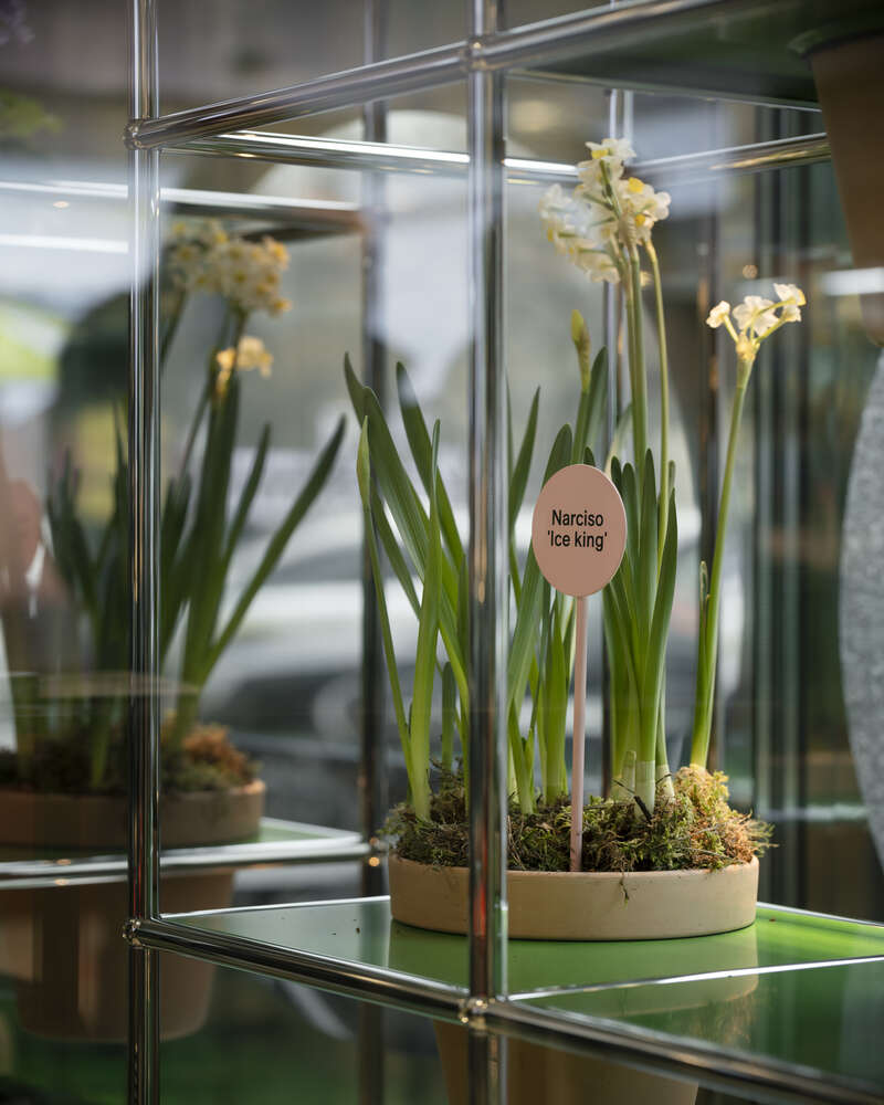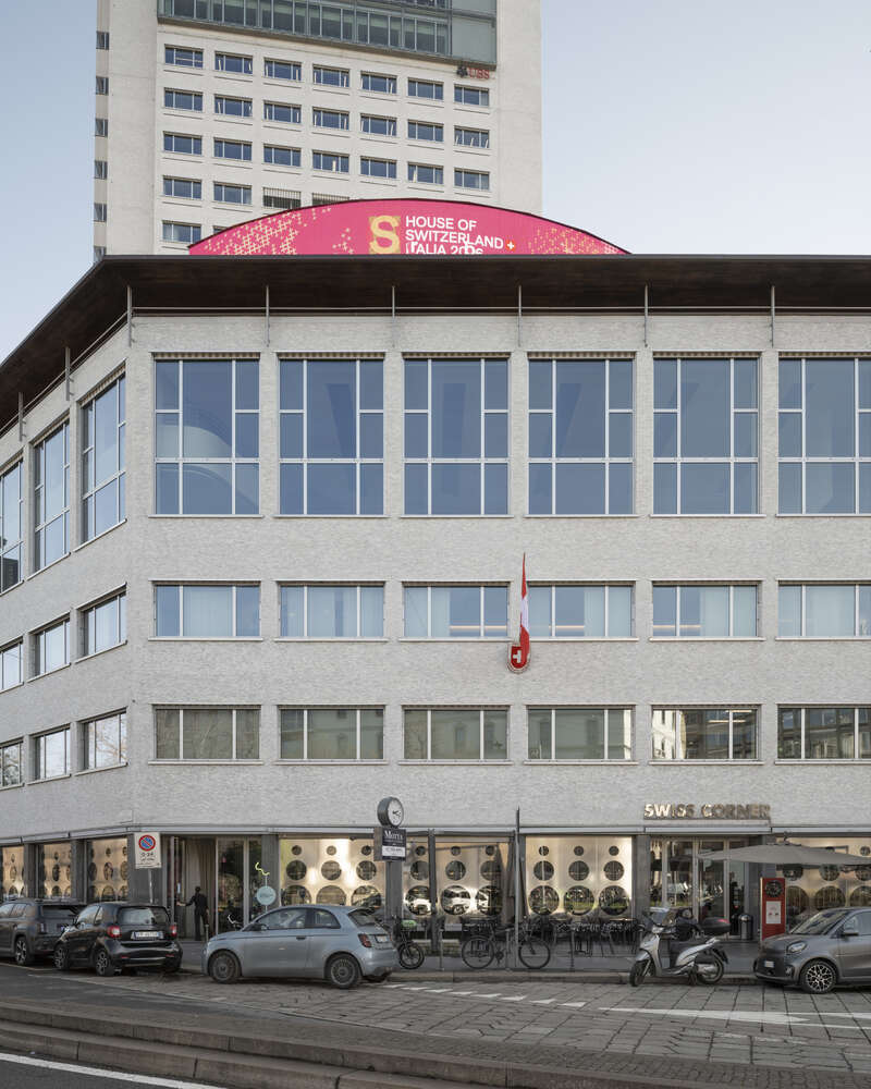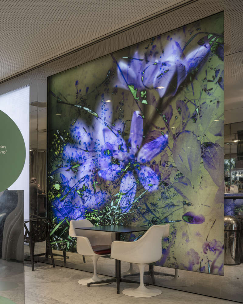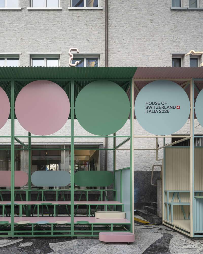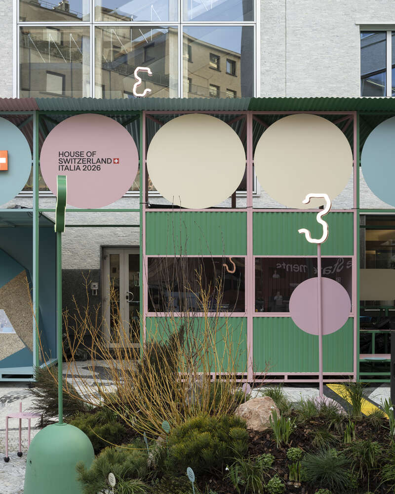 House of Switzerland is a garden. For a short moment, two weeks, it will be the center of a variable community that comes to celebrate the games or just to hung around and live this singular moment in the center of Milano before they find another place to stay. This other life is imbedded in the design process. The garden-house proposes a certain mood, rather gay, for a welcoming moment. Precis décor and patterns, colored modules that host diverse functions: stage, tribunes, bleachers, kiosks, market stalls. Other freely drawn patterns become lighting features, supported by the famous Milano street panettones that the town knows so well. They are part of a family of furniture: seating stools, tables, signage support. The garden also develops inside, within the existing restaurant space, the Swiss Corner. The photographic artwork of Dylan Perrenoud embraces the visitor with a series of lightboxes showing mysterious rock pieces and composed flora universes coming from an ancient collection of slides of the 1980s. Facing the lightboxes, a collection of 140 potted physical flowers is displayed within the depth of the show windows. The existing character of the space helps to create a multiplicity of reflexions that are pushed further to the exterior façade where the relation to the street is redefined. Flora Alpina is designed for seamless adaptability, drawing inspiration from the vital role of flowers in sports, medicine, and culture. Plants are healing, plants and flowers are Olympic signatures, celebrative and discreet. They accompany medals and smiles of achievement. They help us rejoice, live and breathe.